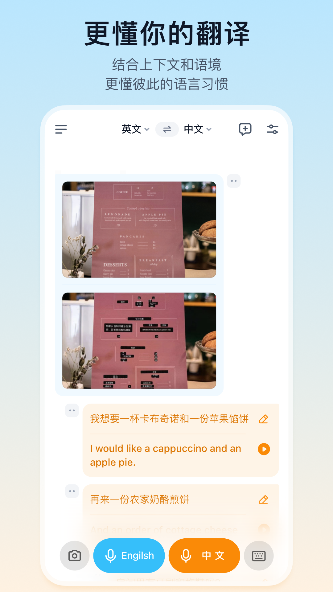 3、提供多元化的翻译输入方式,用户可选择语音识别、图片扫描,或直接手动输入,多种方式随心切换。