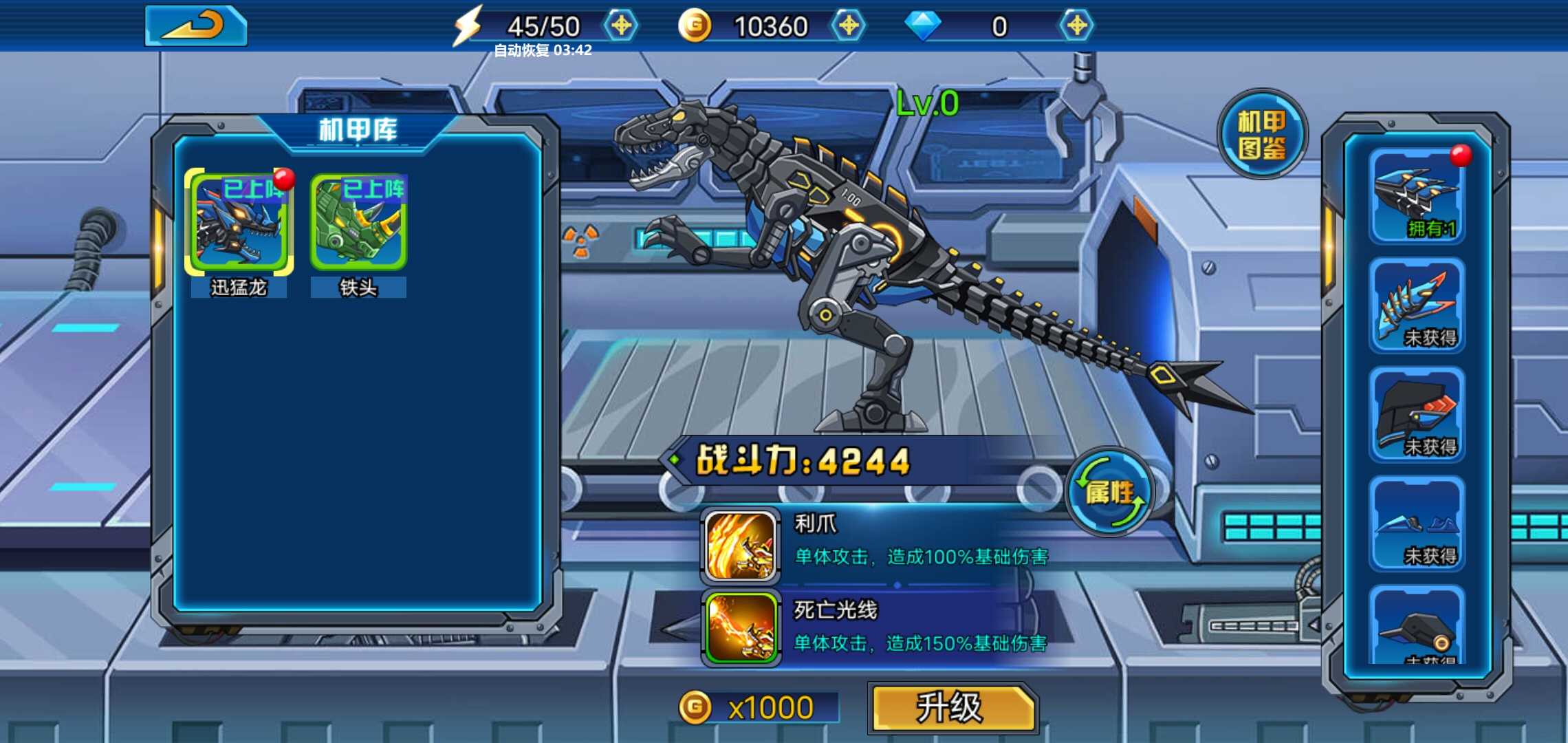 3、每次胜利都能获得一定资源,用于购买新的机甲单位或强化现有恐龙的装甲。