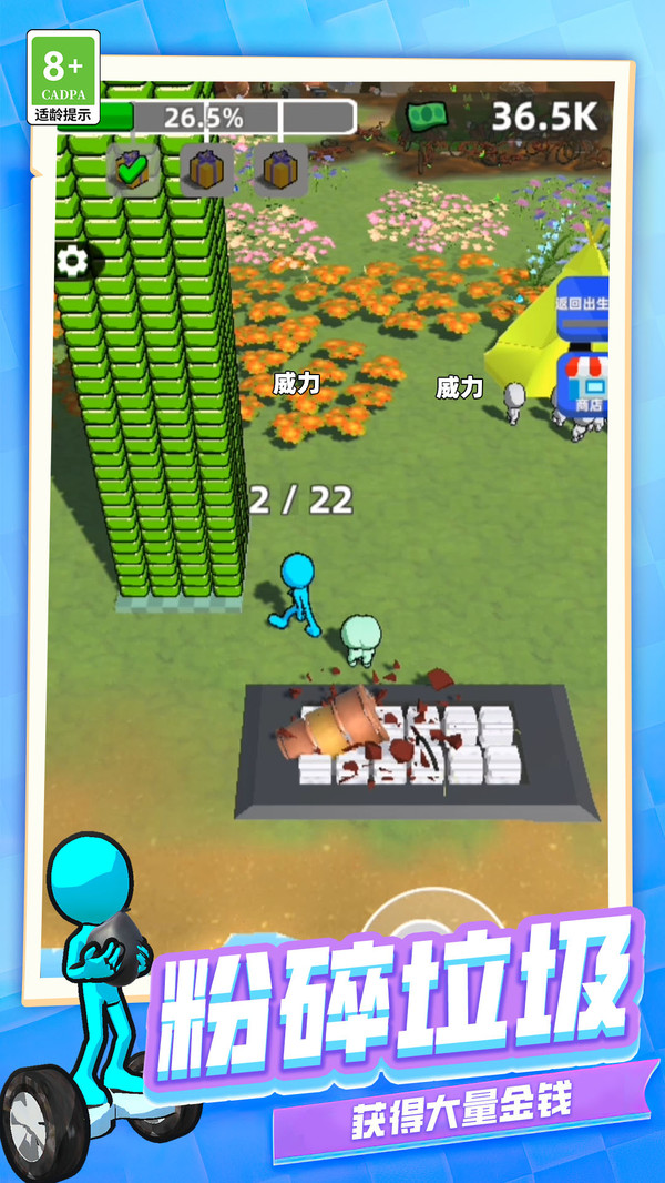 2. 监督整个垃圾处理流程,从分拣到粉碎压缩,再到成品打包,每个阶段完成后均可获得基础金币奖励。