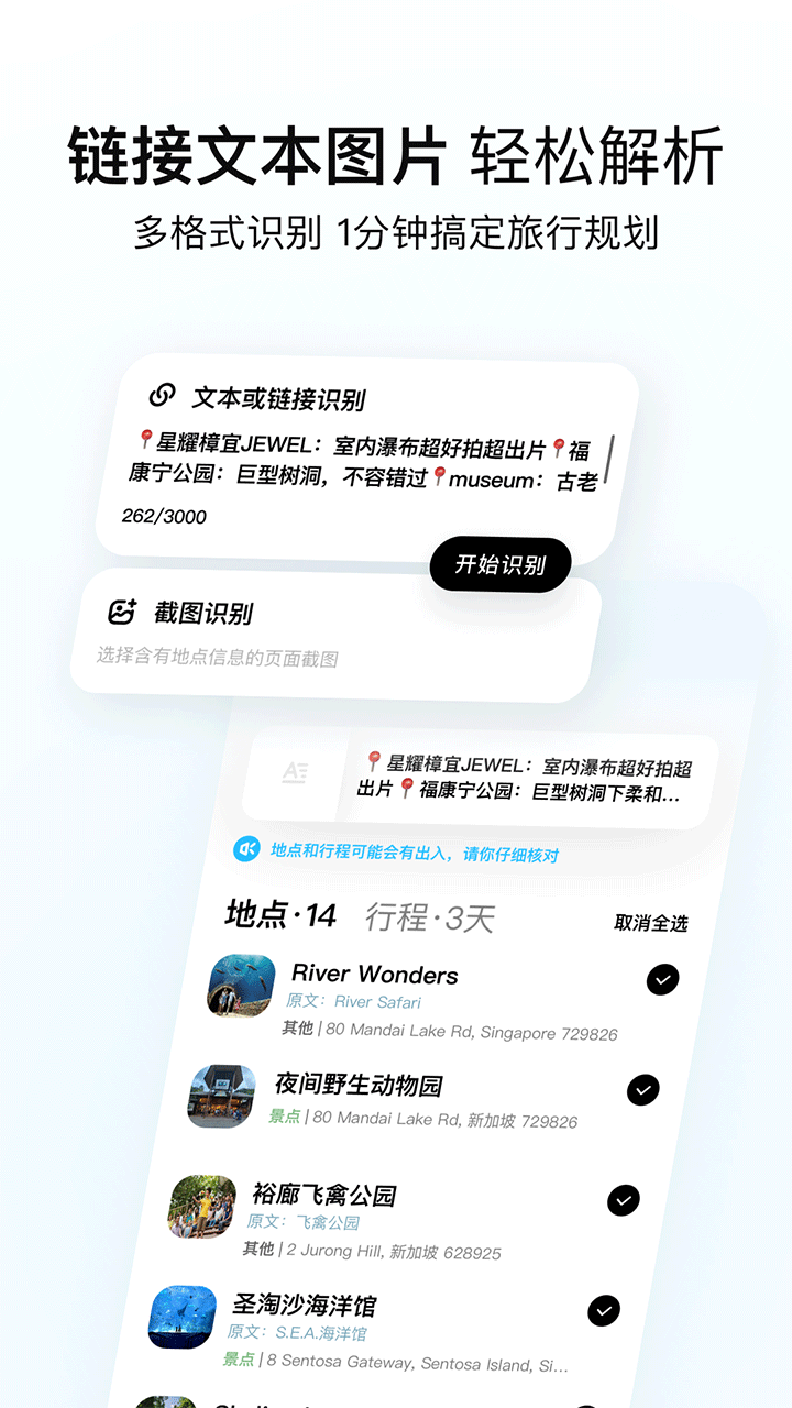 1、自动化整理信息,节省准备时间,专注旅行本身。