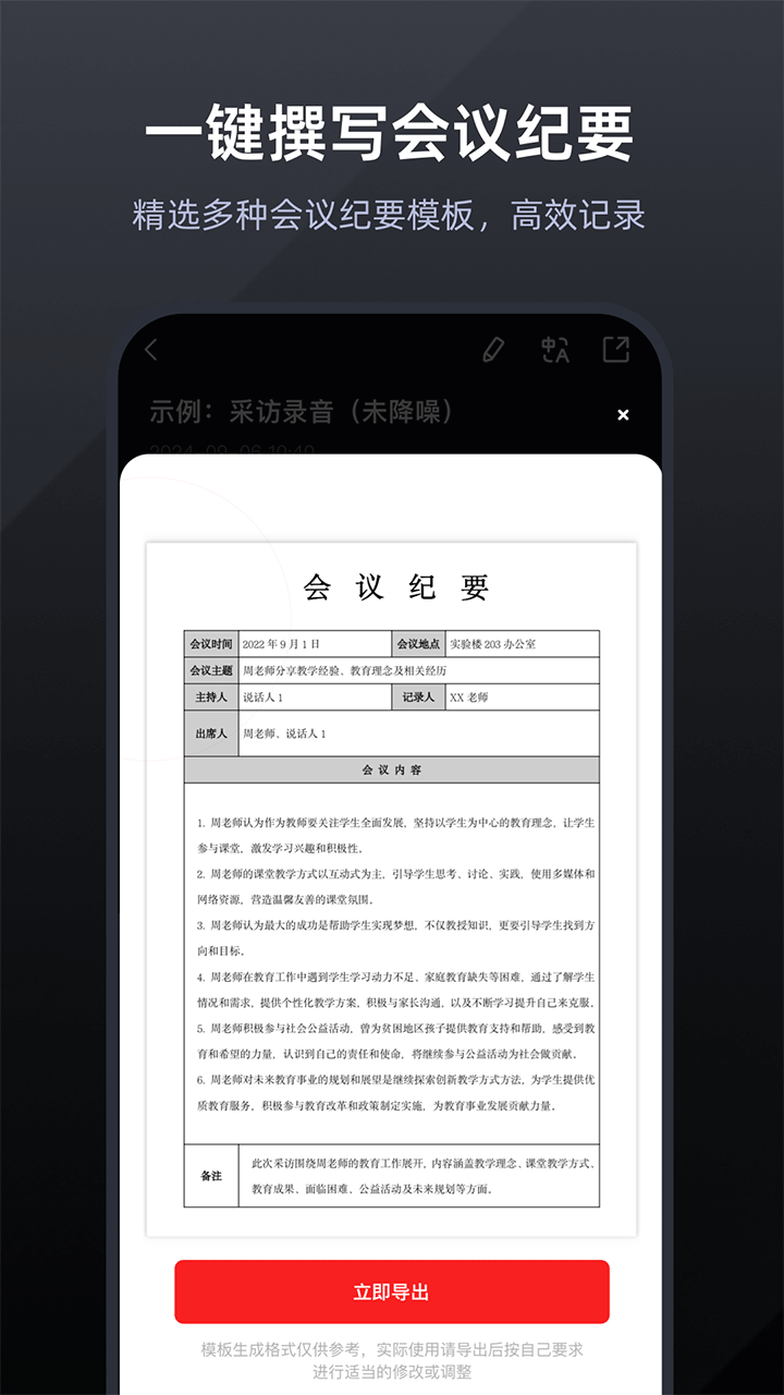 4. 文职人员可一键整理会议记录,省时省力更高效。