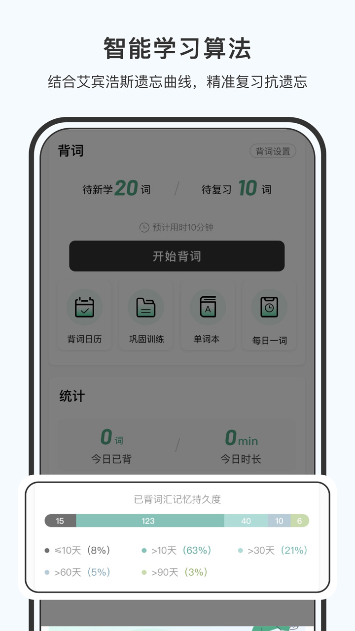 2. 支持查看学习效果,了解单词掌握情况。