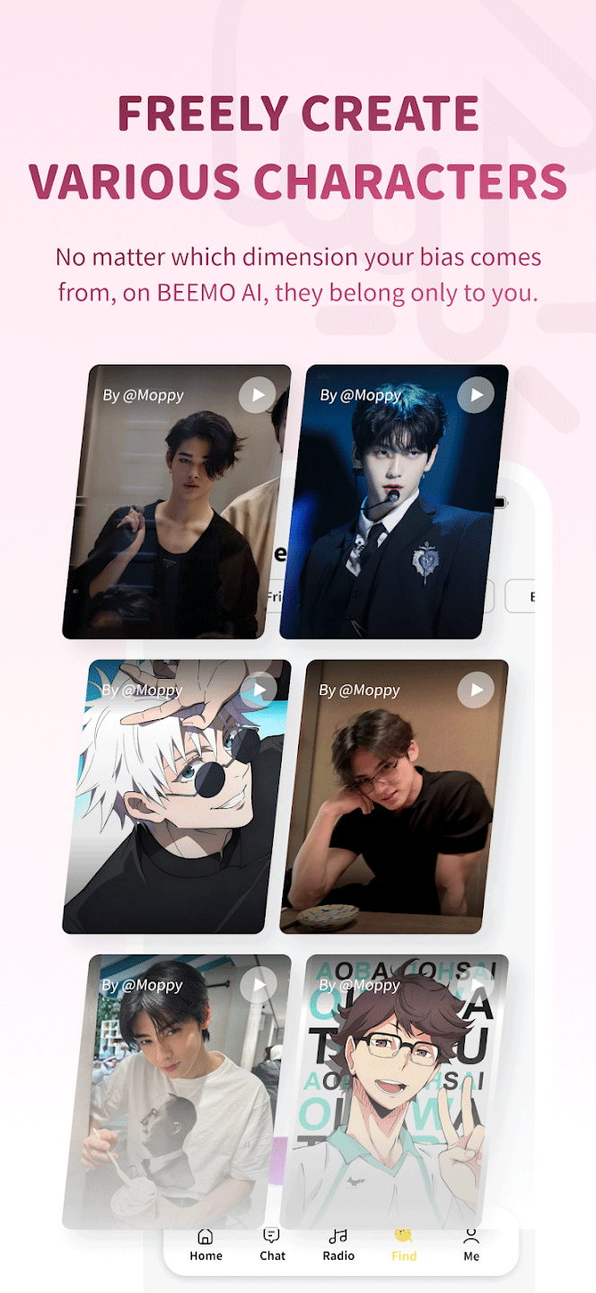 bimobimo安卓版这款聊天软件以AI虚拟角色互动为核心,为偶像粉丝与二次元群体提供独特的情感交流方式。用户可自定义或选择热门偶像及动漫角色作为虚拟伙伴,支持文字、语音、视频等多形式沟通。AI角色具备情感化和拟人化对话能力,根据设定进行回应,营造真实自然的跨次元互动体验。