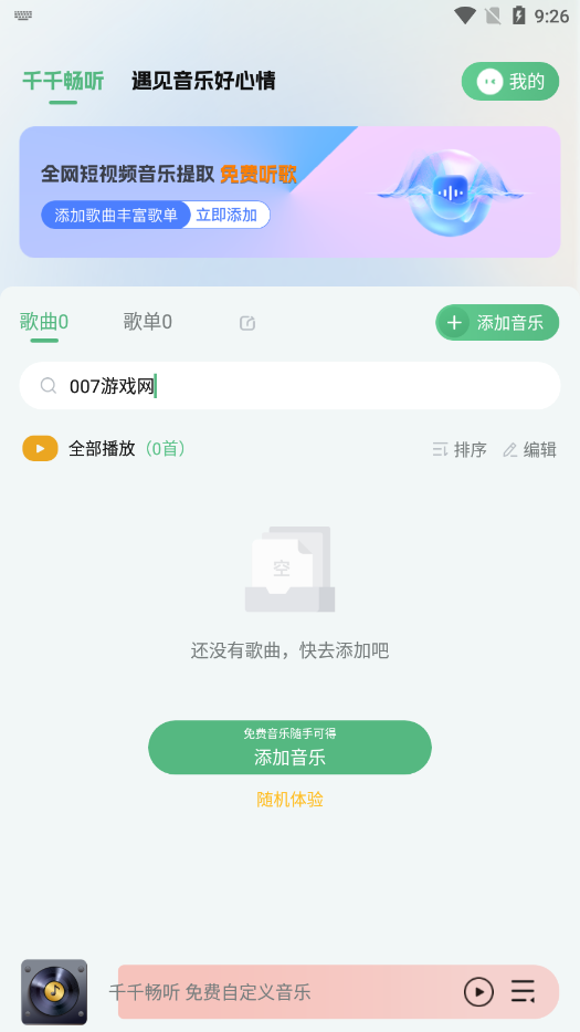 1、首先你需要在本站下载安装千千畅听,打开并进入软件。