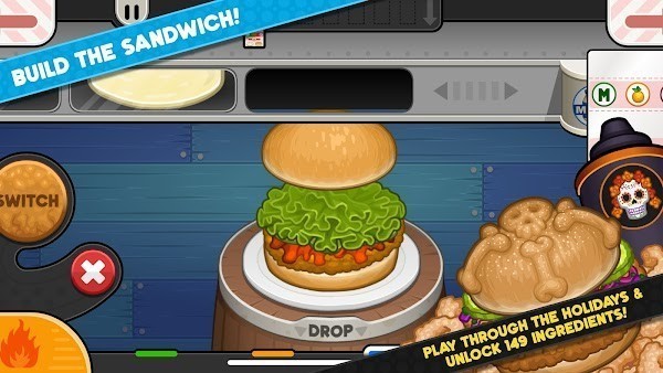 1. 美式卡通风格画面,汉堡制作自由多样,玩法丰富。
