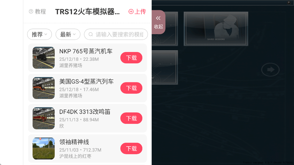 6、在列车模组中找到并点击你刚刚下载的模组,选择后将其放置在地图的空白区域