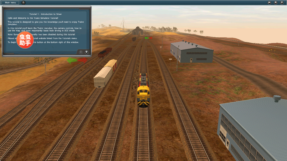 7、完成火车放置后点击左上角的Main menu菜单,再选择Save进行存档